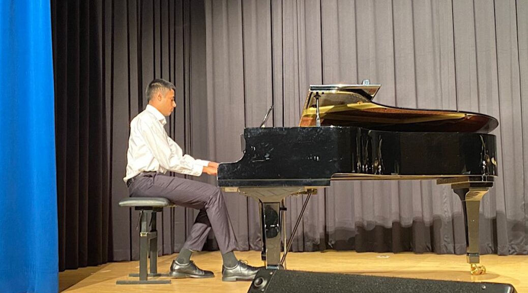 Große Begeisterung im Publikum löste etwa eine brillant gespielte Chopin-Polonaise aus, die Aditya (10c) souverän am Flügel darbot. Bewegt zeigte sich das Publikum auch schon zuvor bei den mutigen und beeindruckenden Auftritten der Jüngeren, etwa der Geschwister Alexandre (5b) und Anne-Sophie (7f) mit einer Eigenkomposition. Einen kräftigen Sound gab es am Schluss: bei den Stücken von Sander (S1) am Schlagzeug sowie Mark (S3) an der E-Gitarre, die als „2 Plate“ dem Publikum die Haare aus der Stirn bliesen.