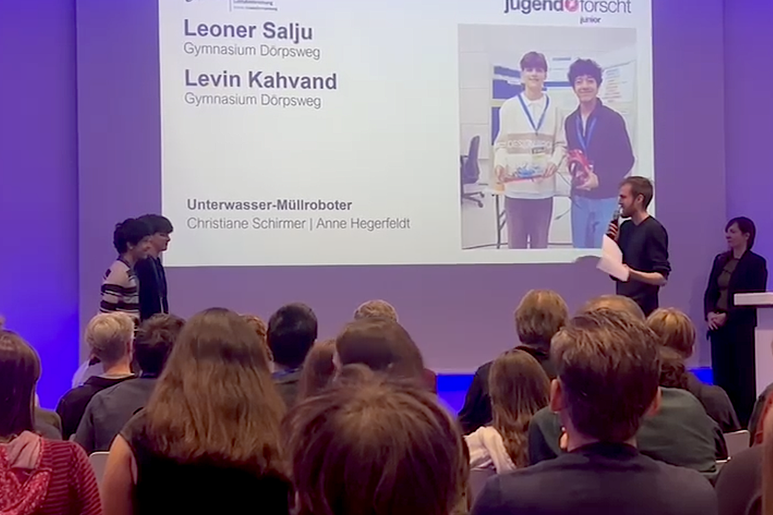 Mit sieben Beiträgen waren Schüler:innen des Gymnasiums Dörpsweg beim diesjährigen Regionalwettbewerb„Jugend forscht – Schüler experimentieren“ vertreten, drei Projekte erhielten sogar einen 1. Preis und werden Anfang April beim Landeswettbewerb antreten. Betreut wurden die Nachwuchsforscher:innen, die ihre Ergebnisse am Zentrum für Angewandte Luftfahrtforschung präsentierten, von Frau Schirmer, Frau Dr. Hegerfeldt, Herrn Doliwa sowie durch das Schülerforschungszentrum.